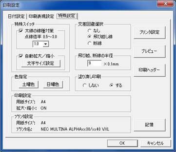 「印刷設定」 で 『特殊設定』 の 「太線の線種対策」 をチェックしてから印刷してください。