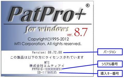 バージョン情報とシリアル番号、導入キー番号等の表示