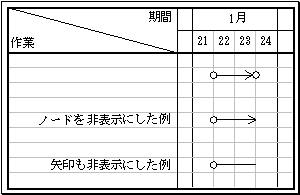 また、工程線の線を選択してから、 の矢印なしボタンを押すと工程線の矢印も消すことができます。